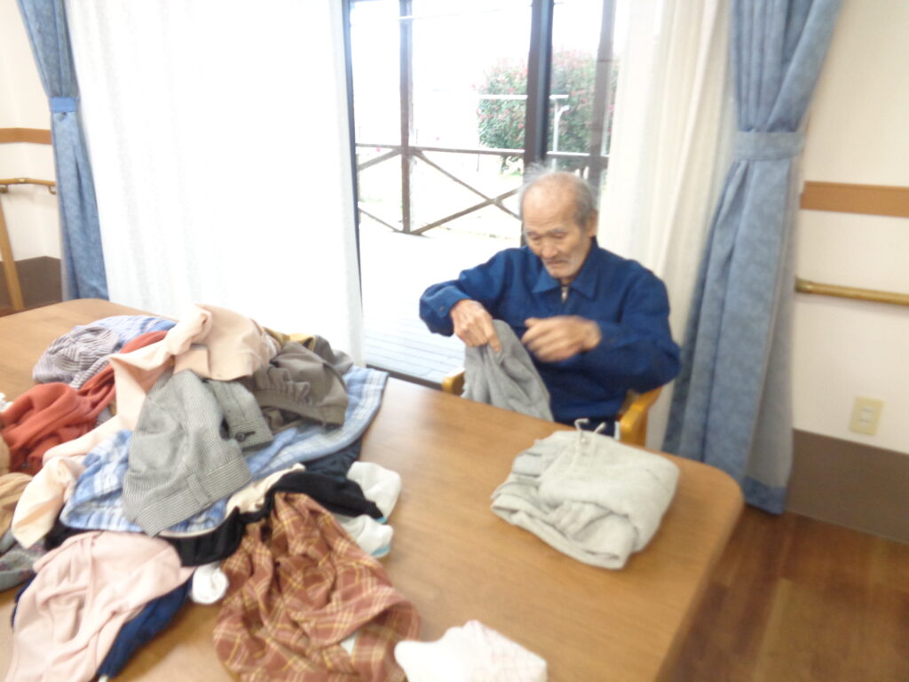 入浴日の翌日はこのように山のように衣類が溜まりますが、皆様洗濯物たたみを手伝って下さいます。