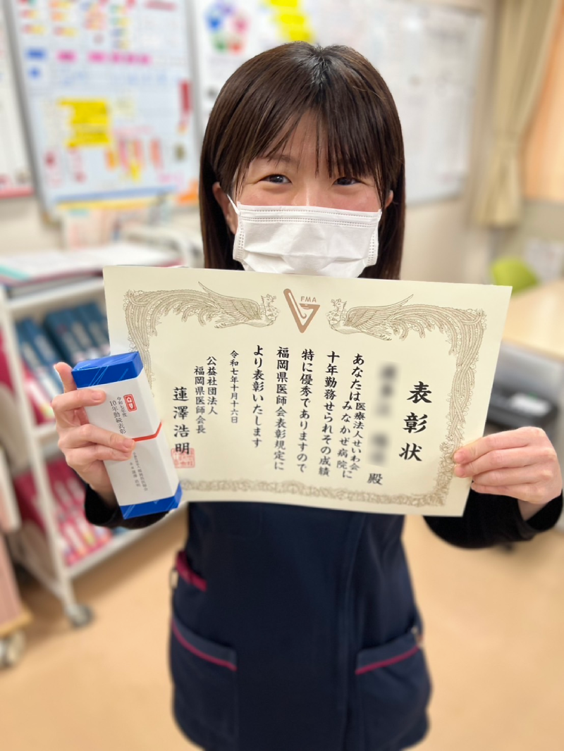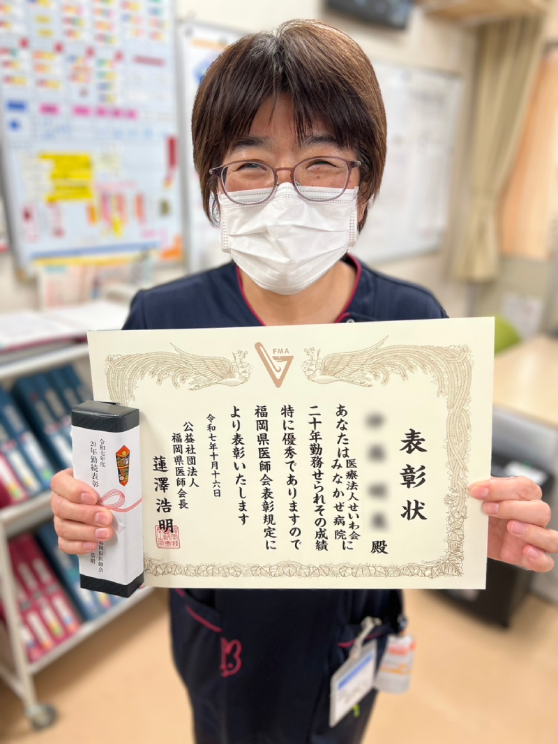 このたび、当院看護部3名が福岡県医師会より「永年勤続者表彰」を受賞されました。