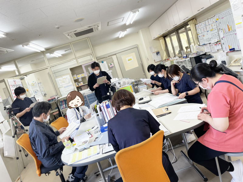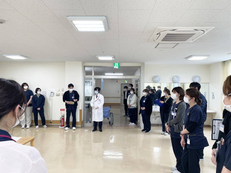 看護部では先日、療養閉鎖病棟にて、朝食時間帯の窒息(誤嚥)発生を想定した「ハリーコール研修」を実施いたしました。